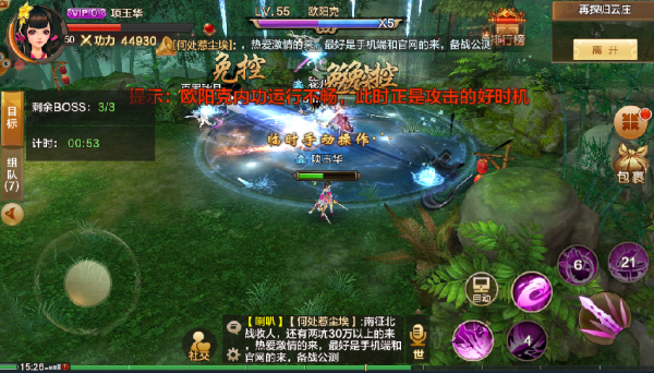 BOSS甩完技能后,会突然进入“进攻运行不畅”状态,毕竟平时在白驼山都是酒池肉林美女相伴,这“床下”真功夫肯定不咋地。这个时候,就是疯狂输出的时间。但是,注意!在欧阳克结束“疲软”状态后,会在脚下留下一个红色预警圈,这个需要玩家提前预判远离,否则你就会在圈中被欧阳克不断摩擦,伤害非常高,而且在受到伤害过程中,无法用闪避技能躲开!在第一BOSS的战斗中,最容易挂掉的就是这个技能!一定注意!
