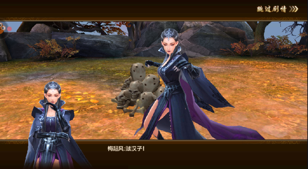 进入副本后,先是解决几组咸鱼杂毛,一顿猛甩技能,酷炫特效吊炸天,毕竟是第一次组队嘛,一定要帅气!注意杂毛的伤害不要集火在一人身上就可以,对于5人组队基本没什么难度。接着就是当年郭靖被撸,伤陈玄风的一段过场剧情。然后,黑风双煞的“铁尸”梅超风正式登场,BOSS战开始。