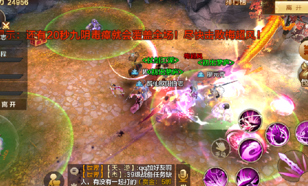 二阶段,在场上依次出现的的毒雾会消失,改为不断扩大的九阴毒瘴,会持续的缩小战斗范围。这个时候,就需要尽快击杀BOSS梅超风,所以这个副本对于组队的平均战力有一定要求的,如果二阶段不能很快击杀BOSS,九阴毒瘴会覆盖全场,那就彻底GAME OVER。