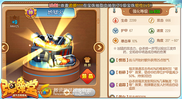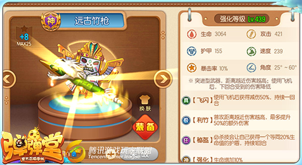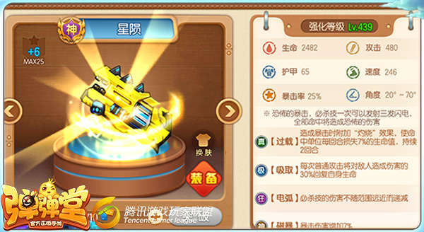 如果没有地狱火,那么星陨也是一款值得考虑使用的武器。虽然星陨的伤害不如地狱火,但拥有所有武器中最高的25%暴击率,能轻松打出高额的暴击伤害。此外,星陨的必杀技也是三叉哦,高达70°的发射上角限更容易打出高抛效果,从命中率的角度来看星陨是要优于地狱火的。