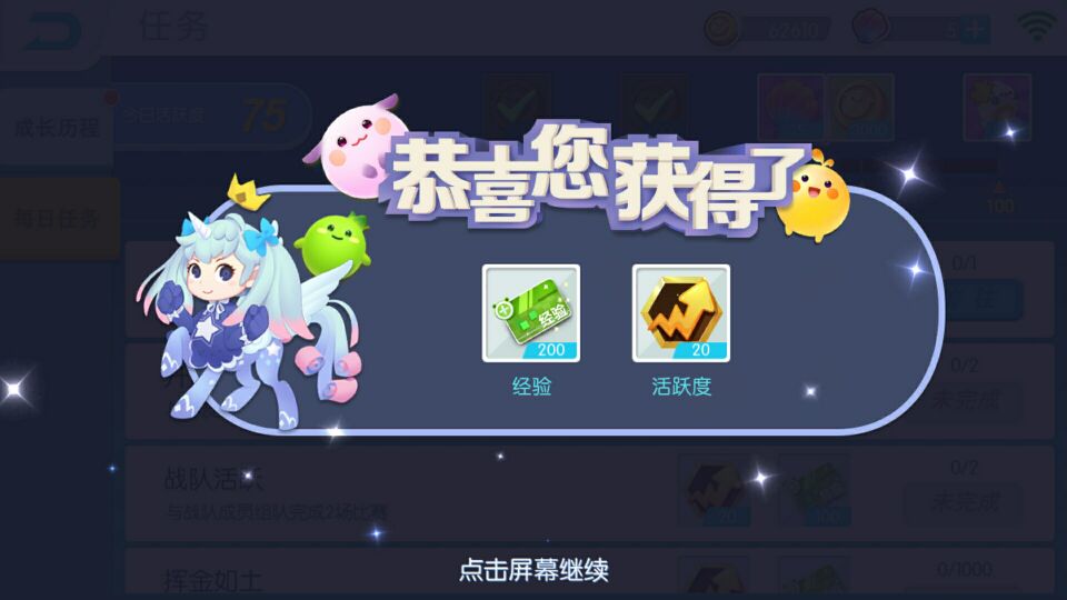 在每日任务完成之后都会获得对应的奖励,奖励中有着海量的经验,足够让球球们快速的升级,不仅如此,奖励中还会出现传奇宝箱的能量。这里就来了解一下这个传奇宝箱:每一个传奇宝箱中都含有海量的奖励(精灵,皮肤,金币等),而传奇宝箱的开启方式就是靠攒能,只要能量足够就可以开启宝箱。传奇宝箱的能量居然出现在每日任务的奖励中,由此可见每日任务的奖励有多壕了吧。