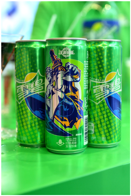 区别于以往普通包装的雪碧瓶,雪碧王者英雄瓶的瓶身上绘有精致的“王者英雄”团,流畅饱满的线条使得各个英雄看上去栩栩如生。同时,雪碧王者英雄瓶的整体包装色调更为温和明亮,给人一种清新凉爽的感觉。