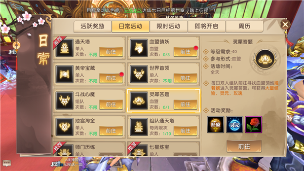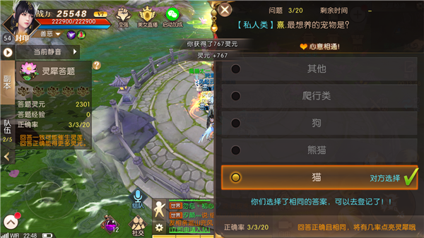 注意事项:灵犀答题不是单人副本,需要和另一个玩家,同/异性都可以,两个人组队完成,