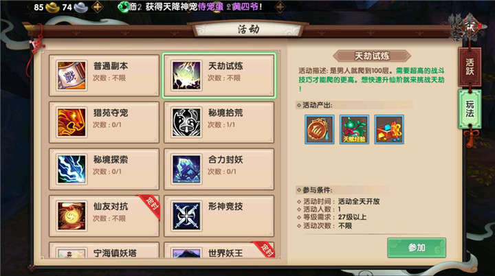 寻仙手游天赋经验怎么获得?寻仙手游天赋怎么解锁?寻仙手游天赋试炼在哪里?寻仙天劫试炼第几关有天阶?寻仙天劫试炼30层怎么过?寻仙天劫试炼重置还有奖励吗?在此为各位分享的是寻仙手游天赋经验获得方法和寻仙天劫试炼攻略介绍!