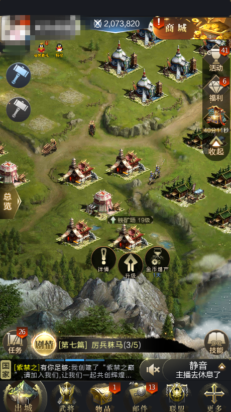点击想要拆除的铁矿场,选择“详情”按钮,在详情界面会有“拆除铁矿场”和“建筑移动”两个按钮。