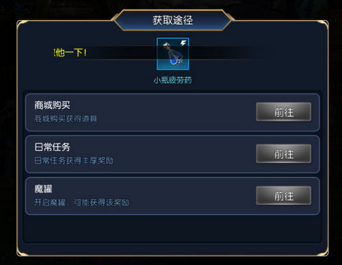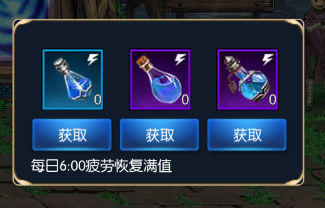 目前恢复疲劳值主要还是依靠使用疲劳药水,它们分别有: