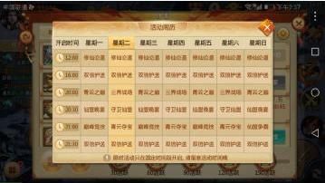 如上图所示,一周七天每天固定不变的就是12:00的修仙论道和16:00以及21:30的双倍放送