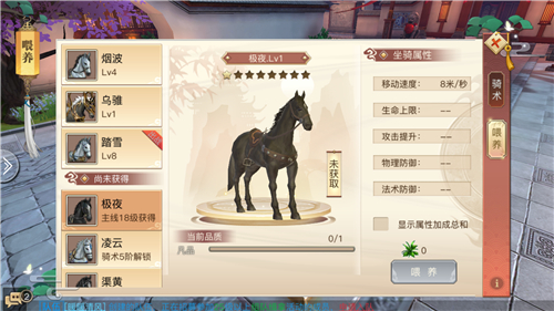 极夜是世间稀有的战马,因其通体如墨且耐力绝佳而得名。极夜适合长途奔袭,但在速度爆发方面比凌云略逊一筹,故而位居琅琊坐骑榜第四,是在游戏中期非常适合玩家的坐骑。