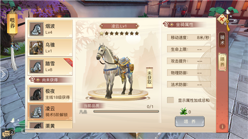 凌云乃是军用良驹,世间罕见,在速度上有着极强的爆发力,极其适合短程突袭,耐力也十分可观,是赤焰职业玩家的绝佳伙伴。位居琅琊坐骑榜第三位。