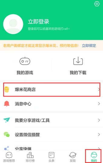 步骤二:打开好游快爆APP,找到爆米花商店:快爆首页——我的——爆米花商店。
