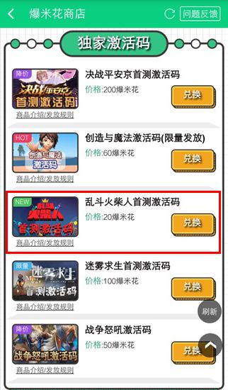 步骤三:点击【爆米花商店】进入商店页面,兑换乱斗火柴人激活码!