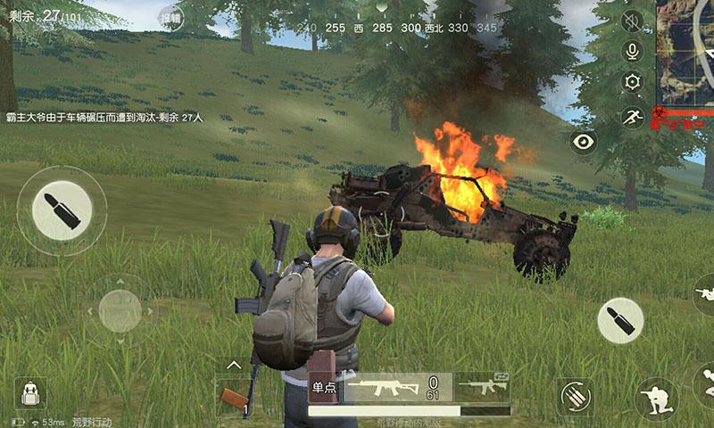 受欢迎的原因还是他的翻山越岭能力,除了不能过河,冲进房子内,其他的地方都可以到达,而且遇到有人就一直压过去,一压毙命了,成功的拿下一血,还可以凭借着速度,让别人不能一下子把你汽车打爆了,相反还会暴露出他的位置,自己只需要看地图,调转车头就可以把他干掉了