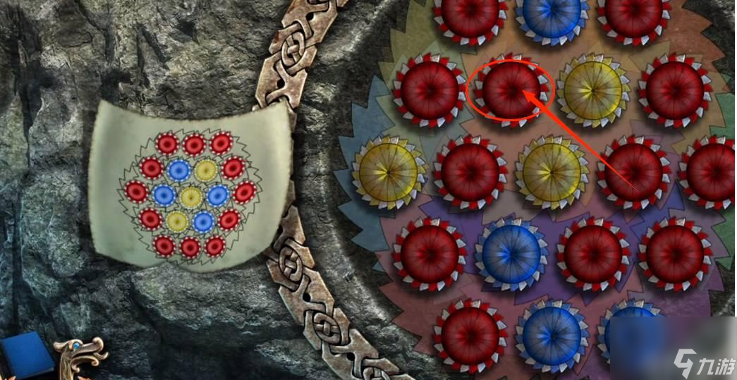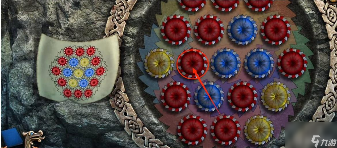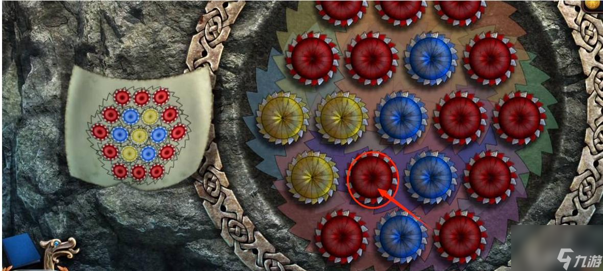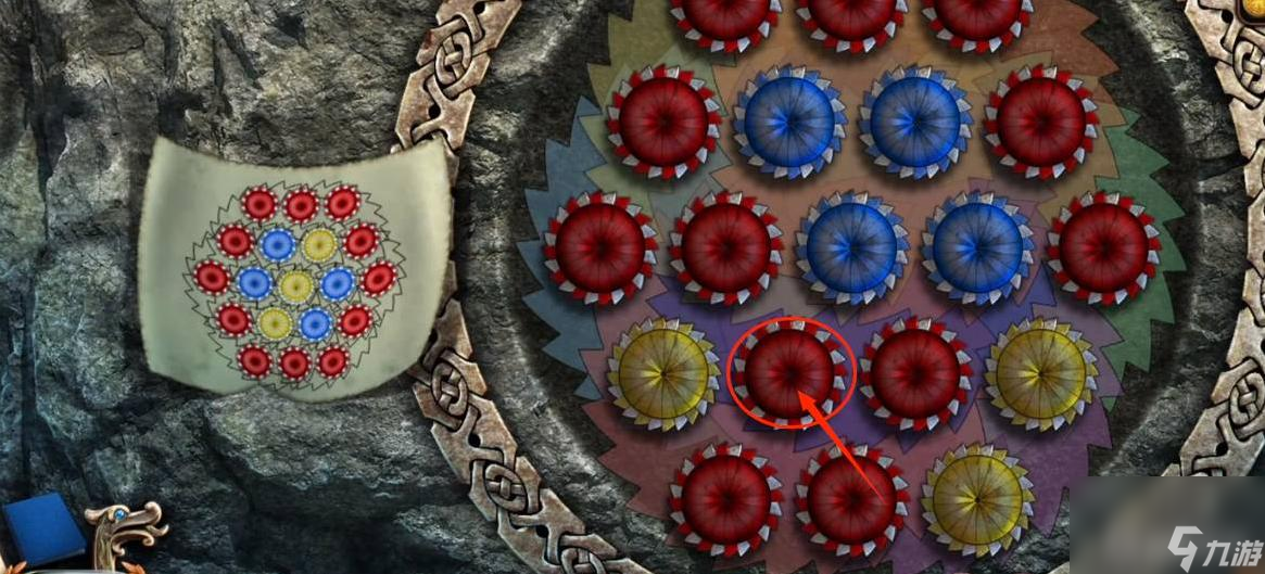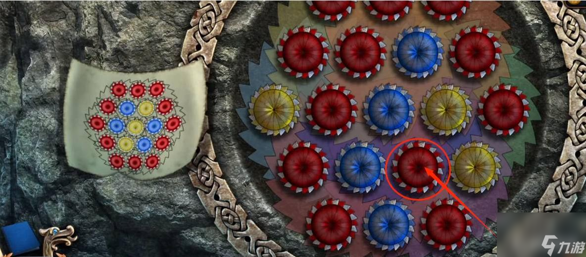 密室逃脱18中的那个齿轮圆盘游戏需要按照线索提示重新排列图案,旋转成与左边的图案一致即可过关。