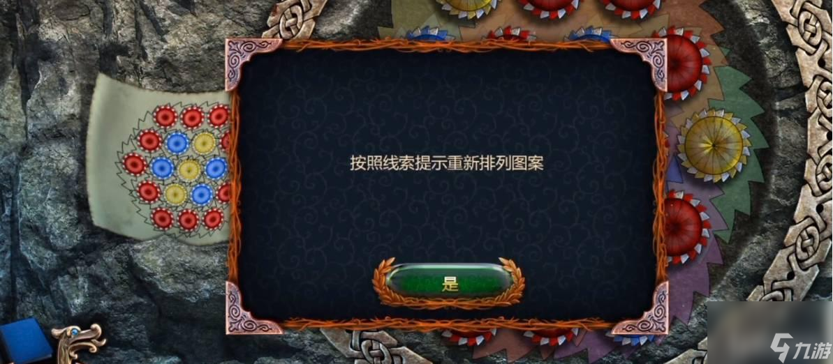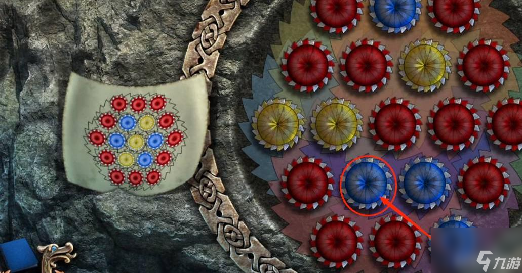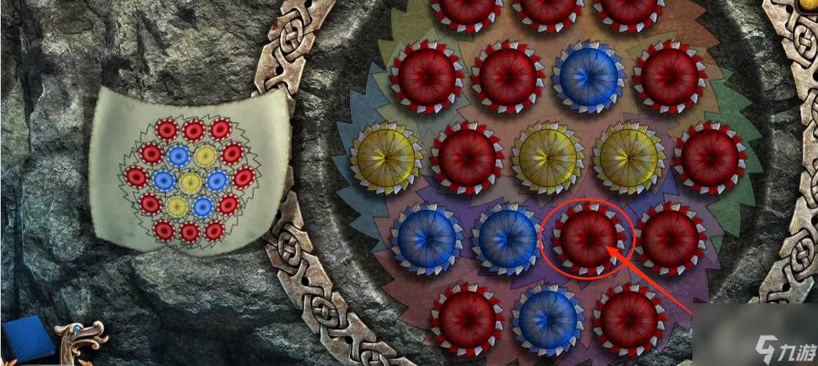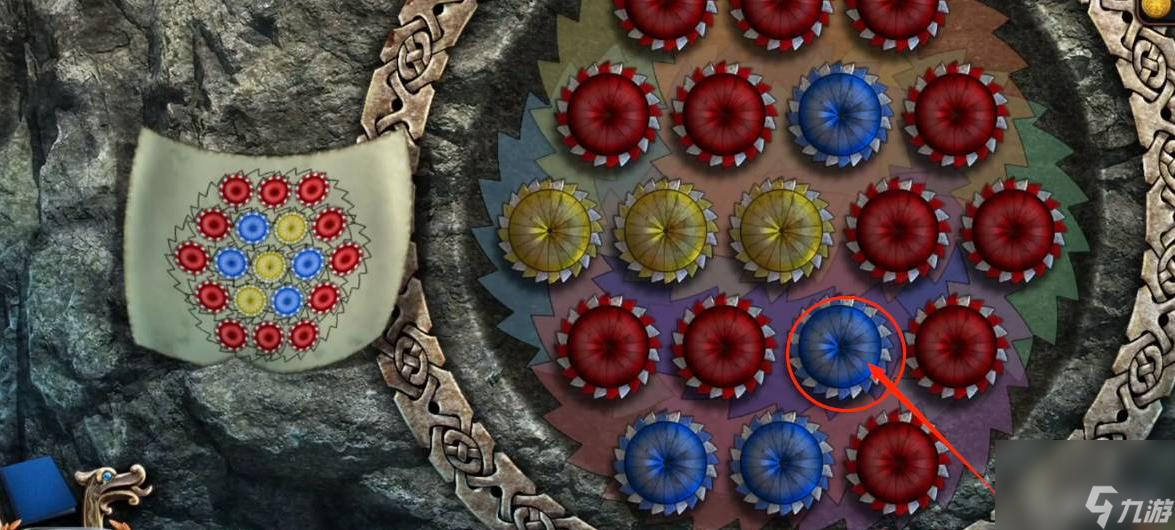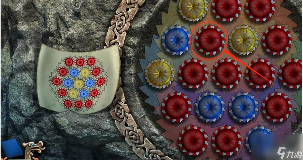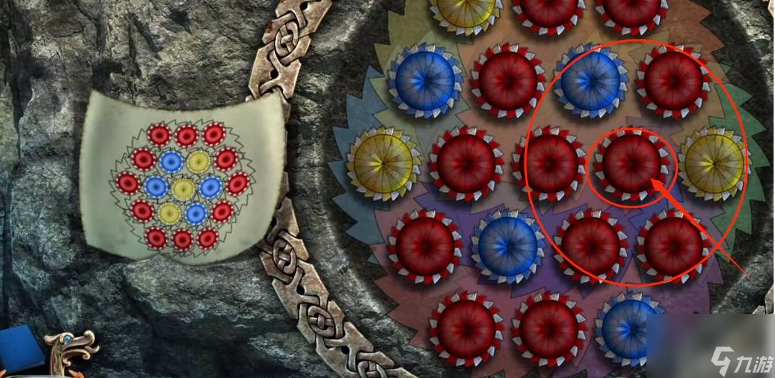 密室逃脱18中的那个齿轮圆盘游戏需要按照线索提示重新排列图案,旋转成与左边的图案一致即可过关。
