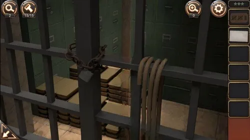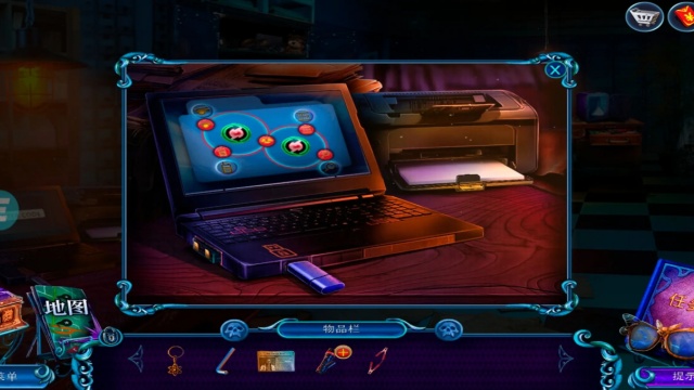 回到电脑室,调查下方电脑桌柜子,用磁铁吸出金属栅栏里的钥匙。