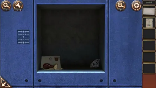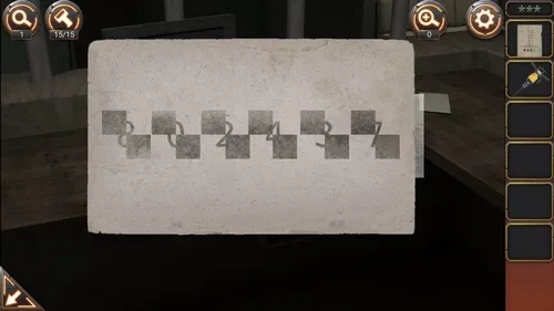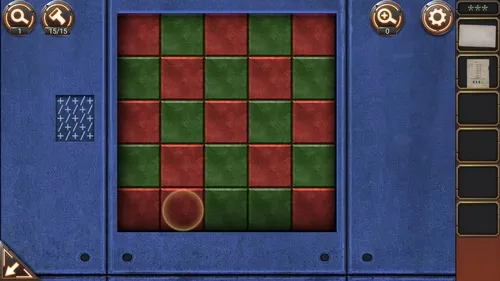 调查左侧墙壁,根据左边的提示移动方块完成两次小游戏(下图是第二次小游戏的配图),得到一块磁铁。