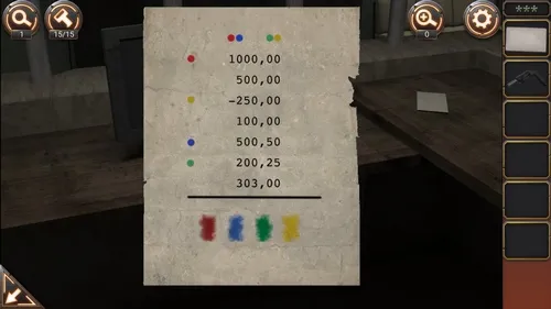进入内室从左边的门进入电脑室,拾取桌子上的纸张,根据纸张的提示得到密码1520。