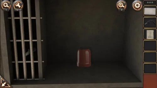回到内室,在右侧道具栏中将喷枪和燃料组合起来,使用喷枪烧掉铁门锁进入保险库。