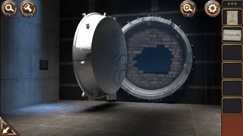 进入保险库,调查大门按照80-00-20-40-30-70依次旋转密码锁,密码锁必须一左一右旋转,不能往同一个方向旋转。打开铁门后使用钻孔器破墙即可逃出升天!