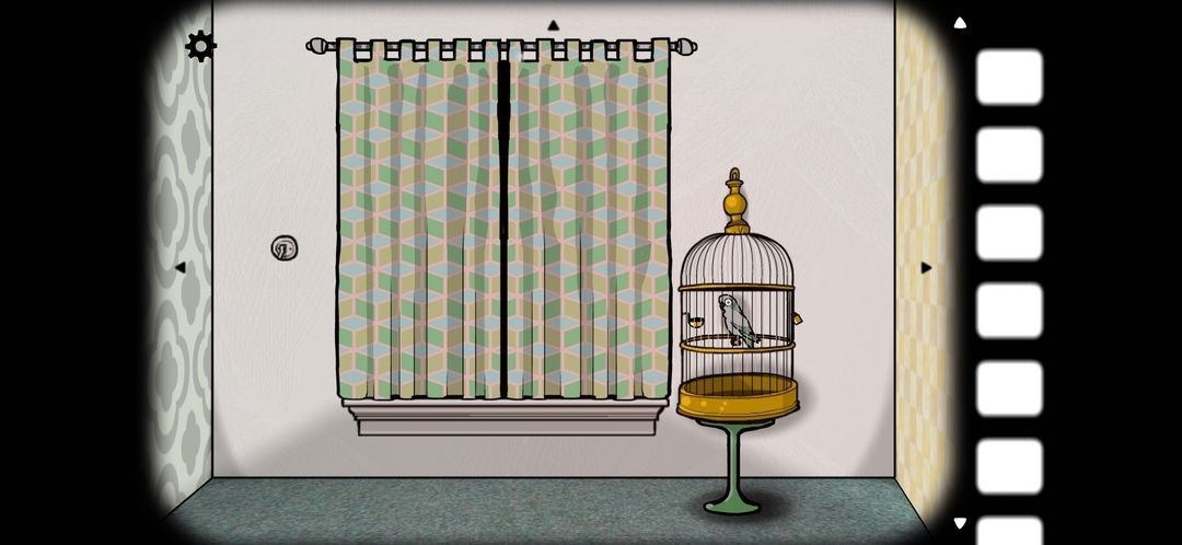 来到下一个场景,一扇拉上窗帘的窗户,一旁的鸟笼里关着一直鹦鹉(哈维)。