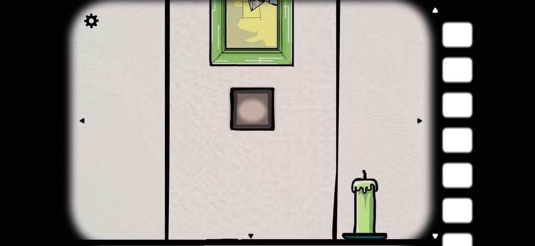 把黑方块放进相框下方的凹槽处,把相框放下来后点击小正方形。进入下一关…