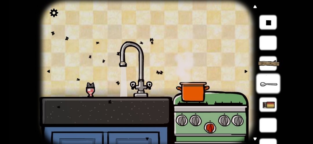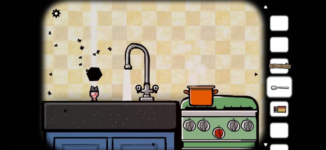 来到厨房,将锅接水后放在煤气灶上,打开白色开关,用火柴点燃。之后将哈维的蛋丢进锅中煮,一阵黑烟后蛋熟了。放在一边的固蛋器上用汤匙敲碎蛋壳,从里面飞出了大量黑色的飞蛾。