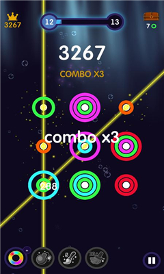 你得到的颜色越多,你的排名就越靠前。专业提示:连续爆炸匹配三个在一排将激活分数乘数!在这个美丽和直观的颜色圆圈和堆栈的难题乐趣。