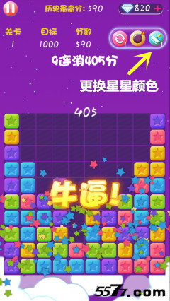 1.游戏中,由于来个星星就可以消除,所以显得很简单,但是同时,消除的分数也会很少,,由于没有时间的限制,你可以先观察,看看有那些地方是可以触发消除的