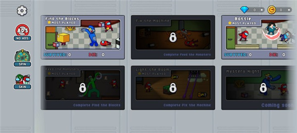 3、通过使用获得的金币、钻石可用来解锁丰富的角色皮肤;