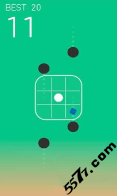 游戏以竖版平面的形式展现给大家,在一个单色彩的背景中会看到白色边框的九宫格,然后会有很多黑色的圆点从四面八方经过,而我们的目的就是在保证白色圆点不被黑色圆点撞到的情况下去收集九宫格里面的方块宝石。游戏的画面非常单纯,除了偶尔变换整体颜色的背景之外,就是一成不变的黑白圆点在九宫格的交锋了,单论视觉效果不能给玩家太多的冲击性,休闲意味倒是蛮足的。