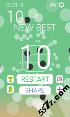 游戏采用了无尽挑战的模式,就跟Flappy Brid一样,考验玩家们的总体控制协调能力,没收集一块宝石则增加一点分数,最后看玩家所获得的积分数量判断成绩,所以不要老想着躲避黑色圆点,更重要的是快速收集更多的宝石。游戏的挑战模式与时间无关、与躲避无关,只与收集到的宝石相关,这就迫使玩家们必须要不断的动起来才行,只想着规避困难而不勇往直前的前行是永远得不到胜利的。
