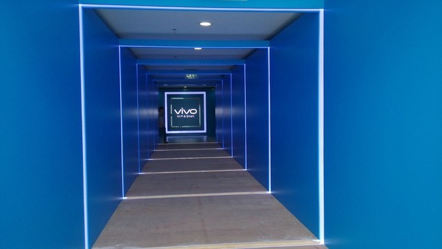 发布会将今晚拉开帷幕,而发布会现场已经正常做最后的准备和彩排,有网友曝光了几张会场图片,来提前感受下蓝色的海洋吧~土豪vivo的这次发布会貌似依旧很高大上。