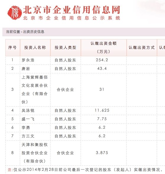 以上是来自工商管理系统上自然人股东的出资信息。