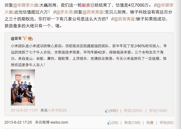 今年4月,老罗又在微博上透露3月底已经完成了1.8亿的B轮融资,锤子估值10亿多元。