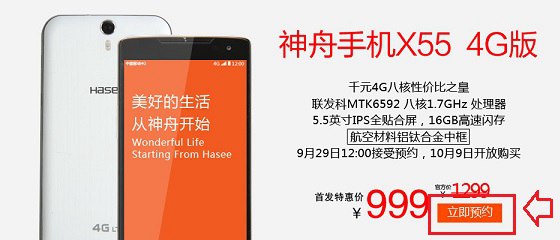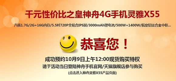 预约成功的用户,请于10月9日上午12点,前往神舟手机官网或者X猫旗舰店现货购买。