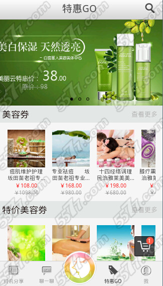 进入美丽云后点击最下方的【特惠GO】,在这里会给大家推荐很多美容用品,大家选择自己喜欢的点击进入。