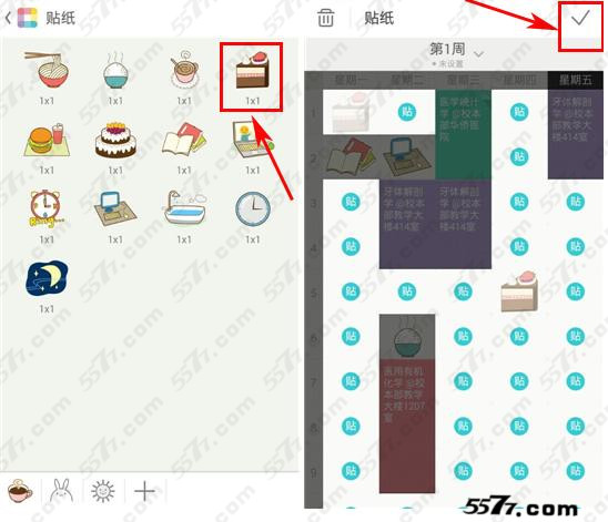 选择自己喜欢的图案点击一下,贴在自己喜欢的位置后点击右上角【√】即可。