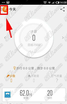 另外小编再给大家介绍一下我们如何修改乐动力中的运动目标。在手机上打开乐动力,在这里选择左上角的按钮。