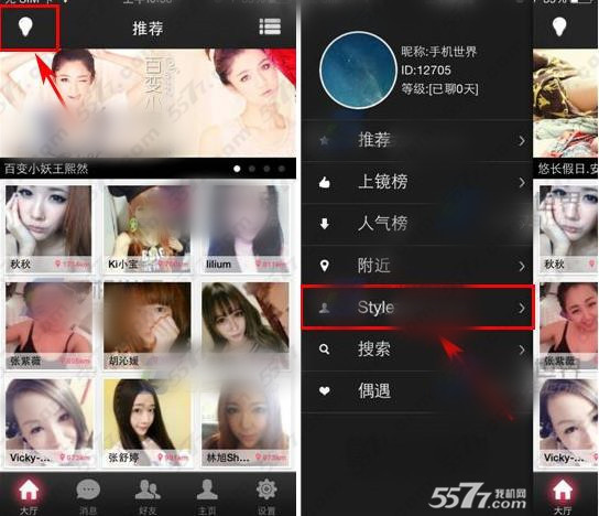 1)首先打开【掌上偶吧】,进入界面后点击左上角按键,再点击【Style】。(如下图)