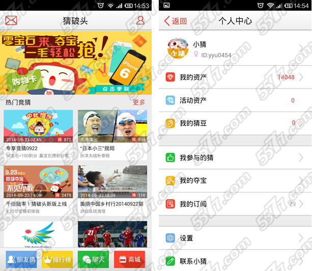 猜破头是一款疯狂的竞猜软件,大家可以在这款软件中自己设置竞猜的题目和模式,疯狂猜明星、疯狂猜电视剧、疯狂猜球、疯狂猜猜猜,参与竞猜答题还可大赔率赚取宝石兑换实物,话费、Iphone等免费大礼。下面小编就给大家介绍一下猜破头竞猜的玩法。