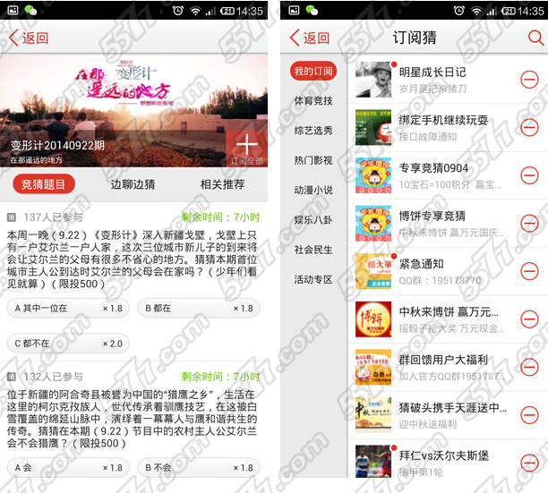 另外我们还能订阅一些竞猜的题目,这样会更加觉有话题式、实时性。