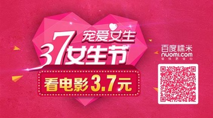 实际上,去年百度糯米3月7日-9日的女生节活动就引发了行业震荡,面向女生重磅推出了电影票、KTV、酒店、餐饮等独享服务,既有每份只收取3.7元的团单,也有降至原价3.7折封顶餐饮和酒店,为全国女生们捧上了一道饕餮盛宴。今年以电影票为突破口,也在吃喝玩乐等诸多领域下足了功夫,尤其是不限影片、不限时段的任性观影更是体现这一节日的独特气氛。