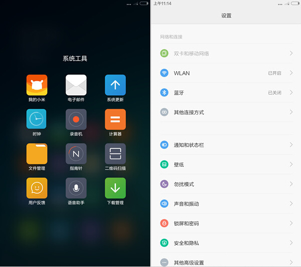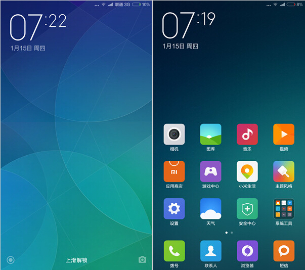 小米Note此次在增大的屏幕尺寸上继续搭载了最新的MIUI V6稳定版,其基于Android4.4定制优化,该版本目前在小米所推的新机上都能适配。V6版本的MIUI整体视觉观感变得更加扁平,并加入更加明快清新的色彩,让系统更具年轻活力。