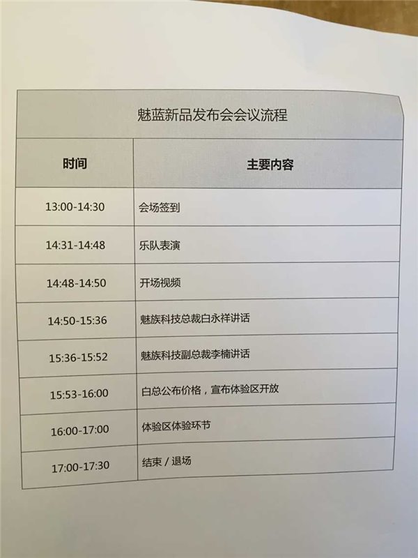 [下午3:18:55] 白永祥重新上台,魅蓝Note2售价公布:16G版799元,32G版999元,下午4点魅族官网、京东商城接受预定,6月12日正式上市,之后会推出电信版,售价仍然是799元。