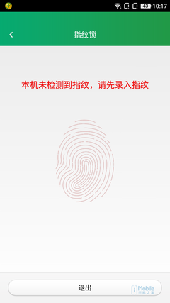 但是在软件设计上比较令人失望的一点是,在没有设置指纹时打开指纹锁,你将看到的只是“你还没有设置指纹锁”的提示,却不提供任何设置指纹的入口。用户需要再点开另一个图标去完成指纹的设定才能再回到指纹锁使用功能。这是一个比较差的体验。