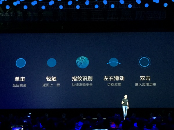 ZUK Z1的U-Touch,集合单击返回桌面、轻触返回、指纹识别、左右滑动切换应用以及双击进入应用历史界面。