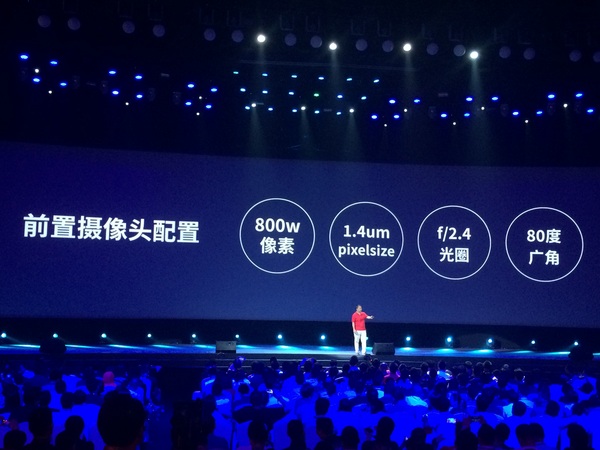 前置800万像素、1.4um、F2.4光圈、80度广角