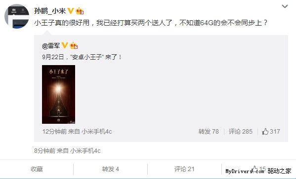 今天下午,小米生态链产品规划总监@孙鹏_小米在微博上暗示,小米4c可能还会有64GB版,但不知道是否会同步上市。