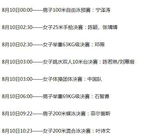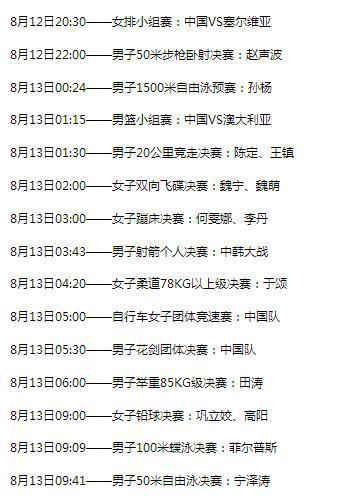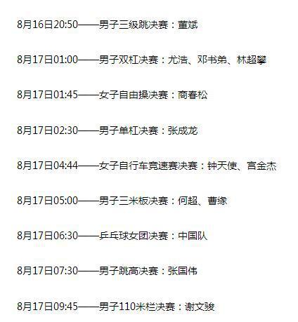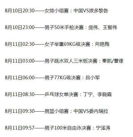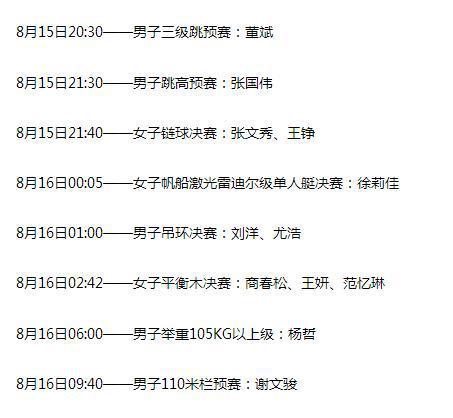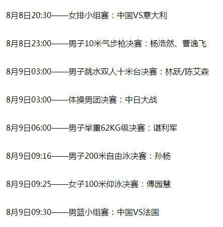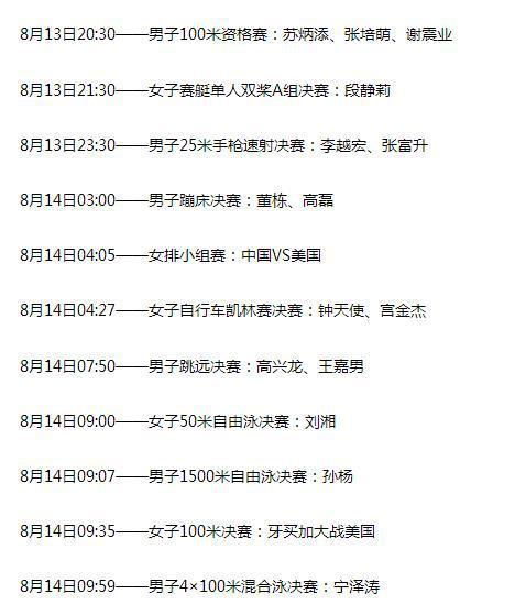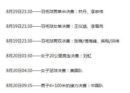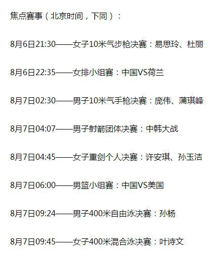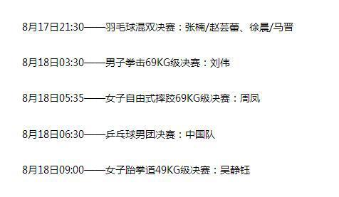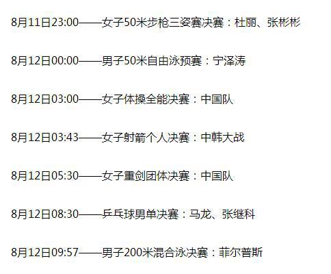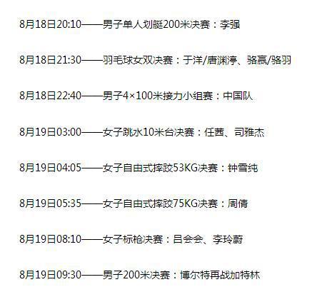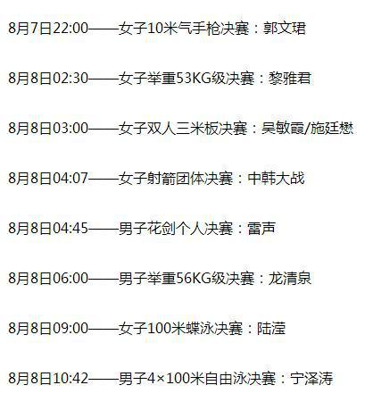 下面,用每日一表的形式,列举出未来16个奥运比赛日,中国代表团的重要比赛,也包括了一些外国重要的赛事: