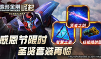 今天,大家感恩了吗?一年一度的感恩节又到啦,在这里官方也推出了一系列的变形金刚崛起感恩节活动,下面小编就为亲们介绍一下本次的活动吧